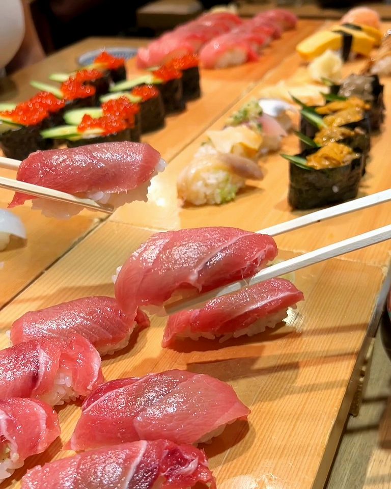 これが全部100円とは思えません!「よーし片っ端から食べまくるぞー!」と意気込んだところで、中トロに大トロ、ウニにイクラにウナギにカンパチもいただきます。トロはトロトロです!こんなに豪華なネタがこんなに沢山食べれるなんて最高すぎます!贅沢ネタも気兼ねなく注文できるのが嬉しいです。