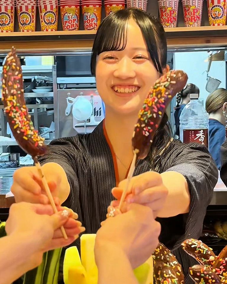 じゃんけんに勝つとチョコバナナが2本貰えるのは盛り上がるに決まってますよね!思わず本気になってじゃんけんしてしまい、お祭り気分をさらに盛り上げてくれます。
