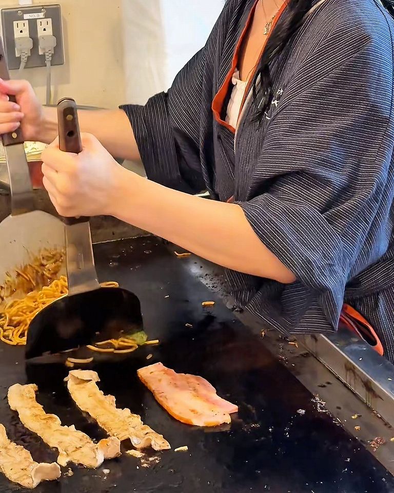 - 料理も鉄板を使った屋台料理を再現