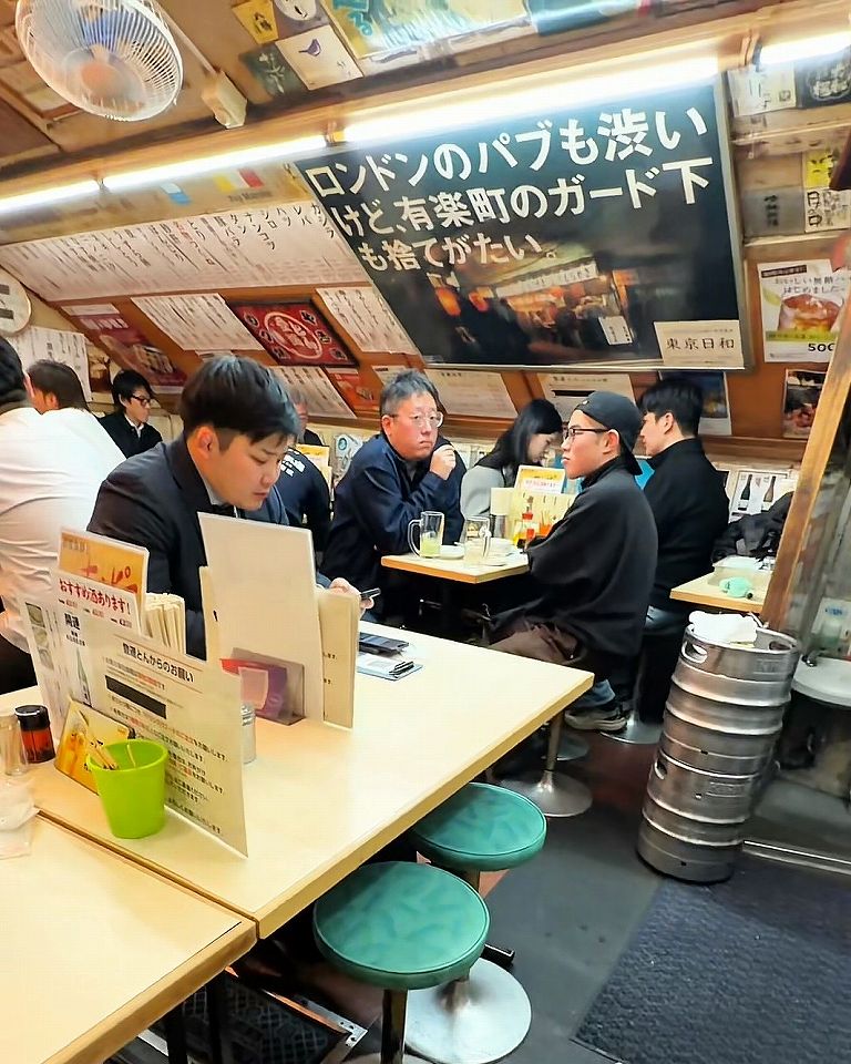 - 創業から70年以上、有楽町の赤レンガの高架下で営業を続けているもつ焼き居酒屋