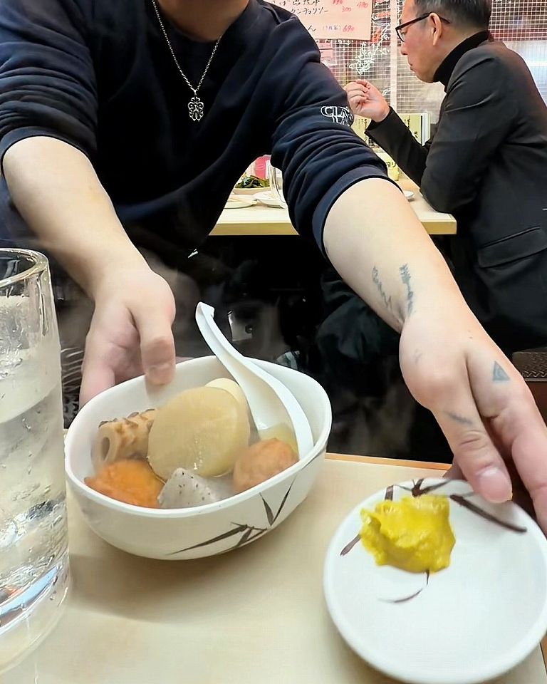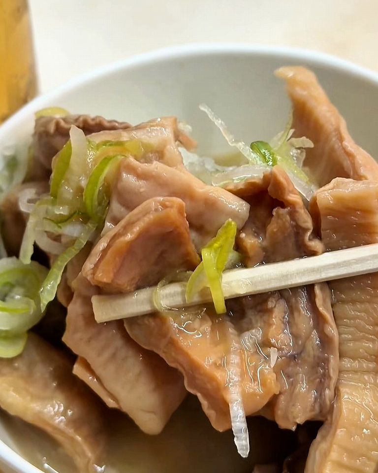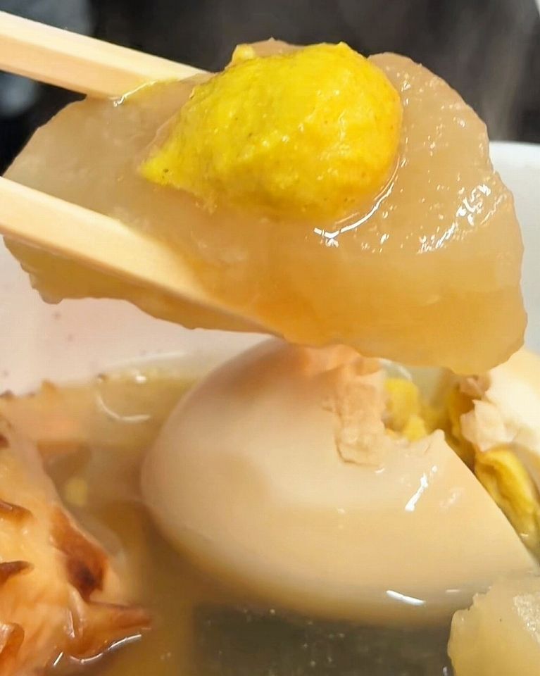 - もつ煮込みは具がたっぷり、おでんは熱々のチンチン