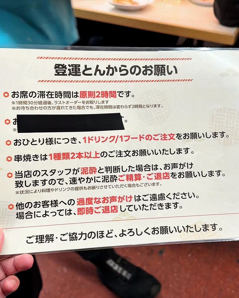 「原則2時間」、「串焼きは1種類2本以上注文」など、注意事項がいくつかありました。