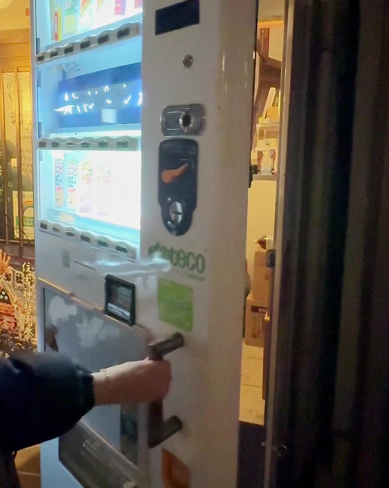 実は、この自販機がお店の扉になっていて、開けるとお父さんが出迎えてくれます。