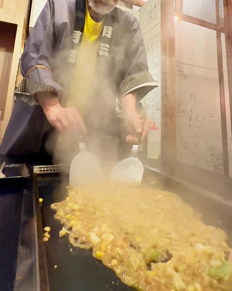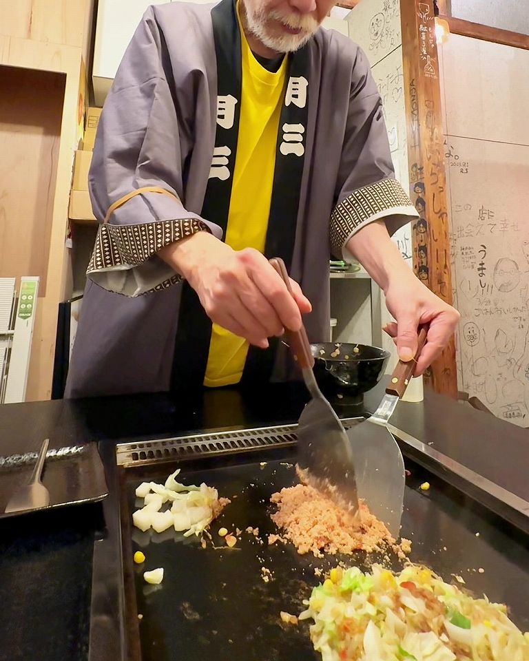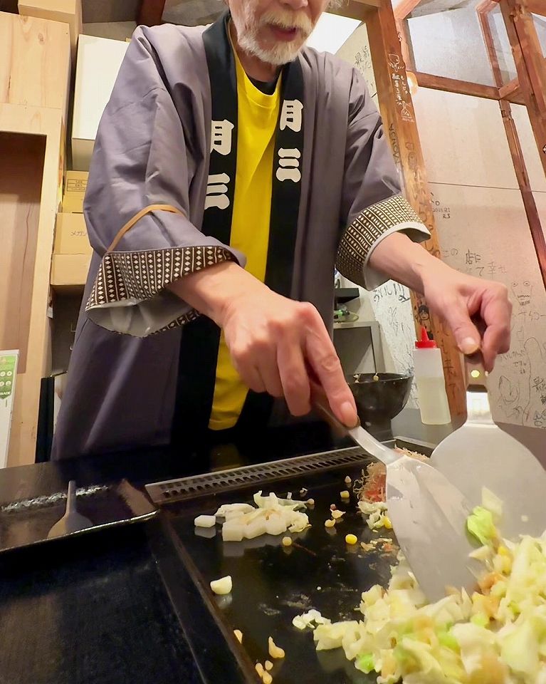 • 35年前に表参道で始めたお店が評判で、実力を確かめる為にもんじゃ激戦区の月島で再スタートさせたばかり