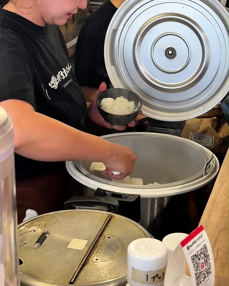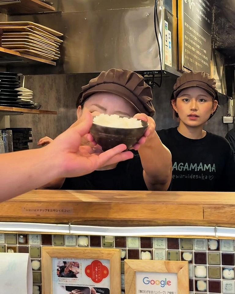 ご飯はお代わり無料だから、お腹いっぱいになるまで食べられます。つやつやのお米が本当に美味しいです。