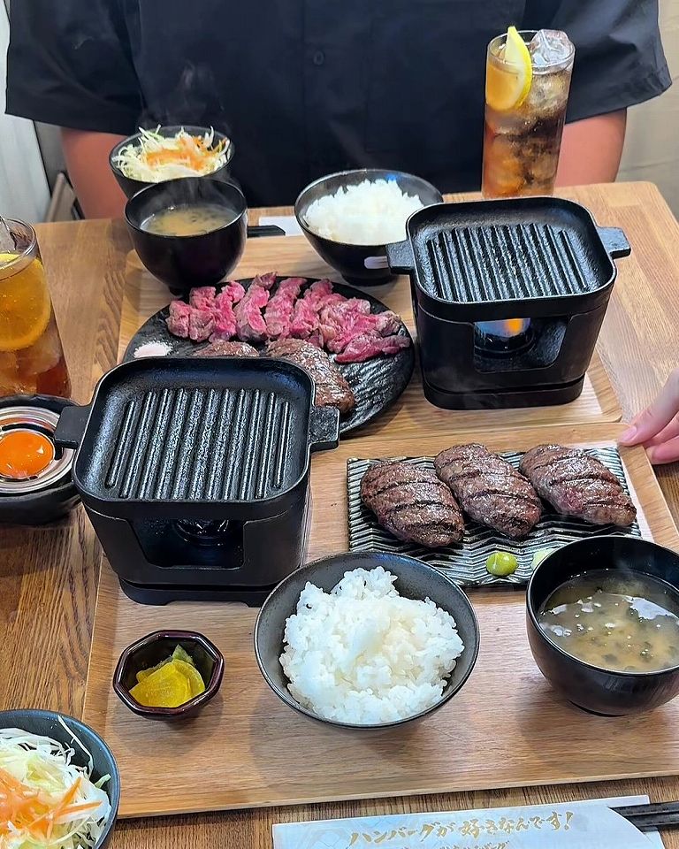 ハンバーグとヒレステーキのセットや、3個セットが人気です。どれもボリューム満点で、肉の旨みを存分に楽しめます。