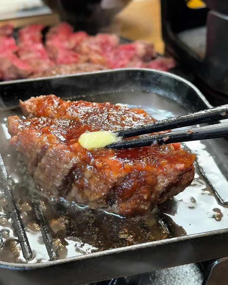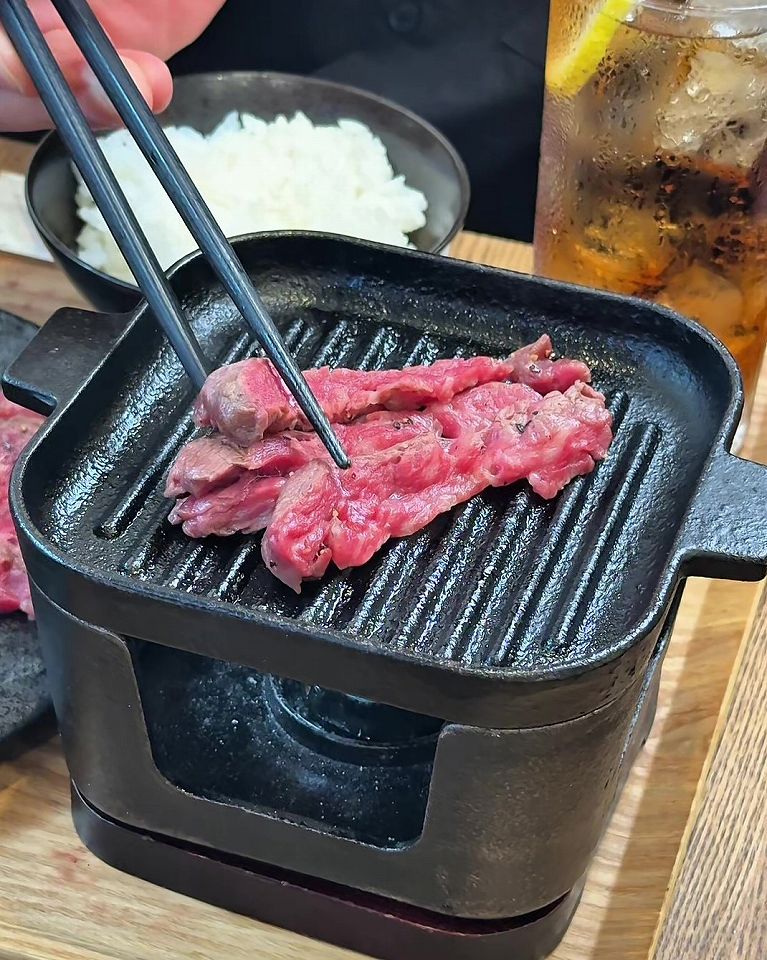 - 鉄板も提供されるから常に熱々の状態で楽しめる