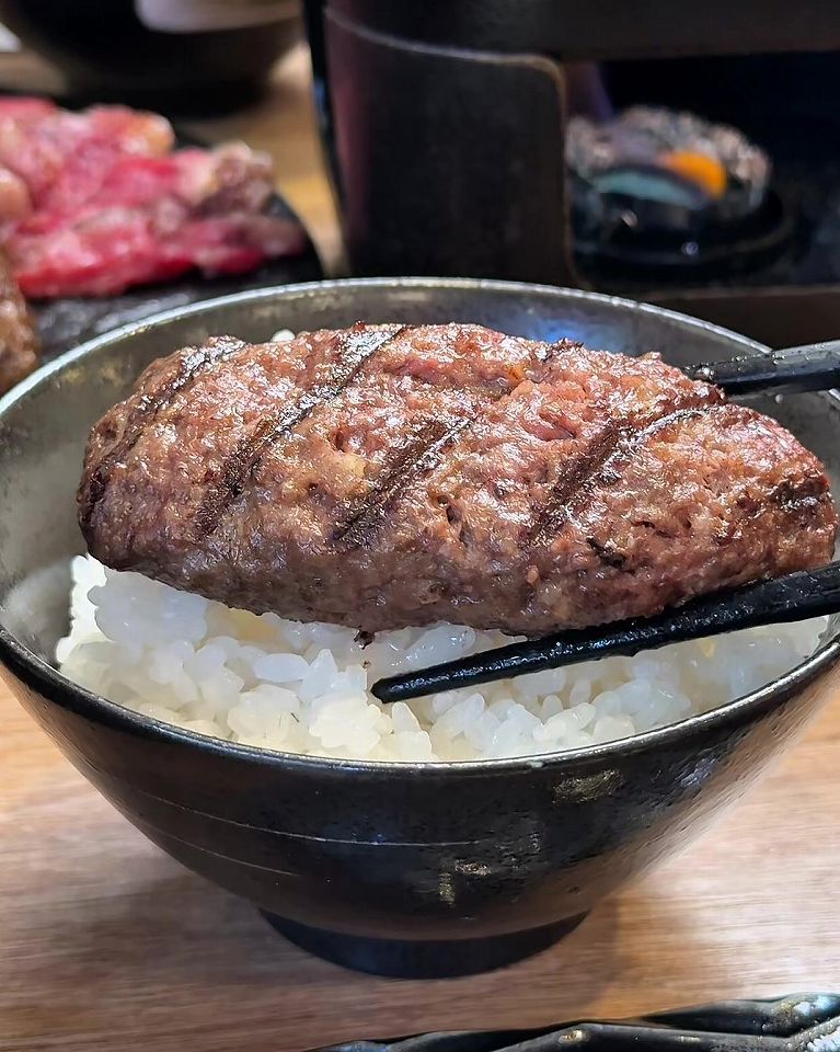 - 宮崎牛を100%使い、炭火でじっくり焼き上げた超贅沢ハンバーグ
