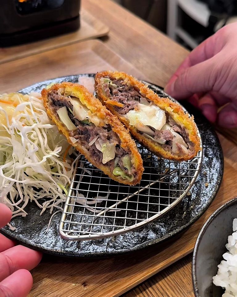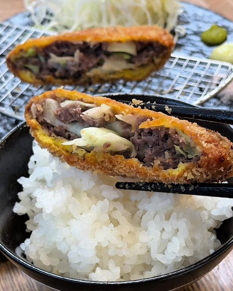 旨味がたっぷり詰まったメンチカツもありますよ!一口食べると、肉の旨みがぎゅっと詰まっているのがわかります。