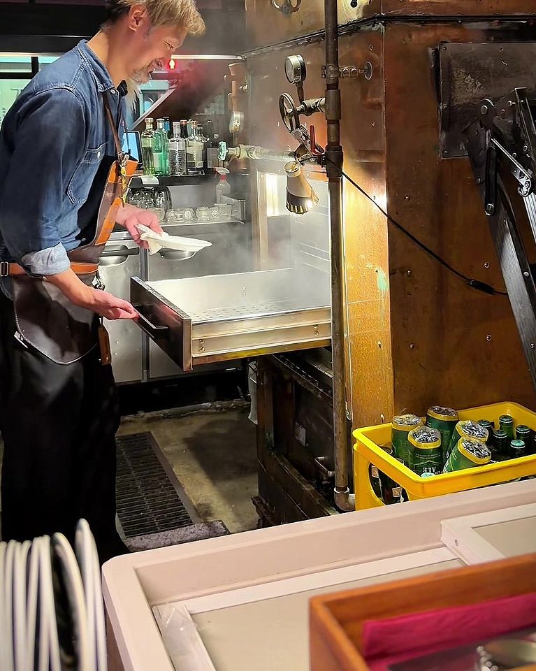 このどデカい蒸し器で蒸し上げる魚介の盛り合わせ!