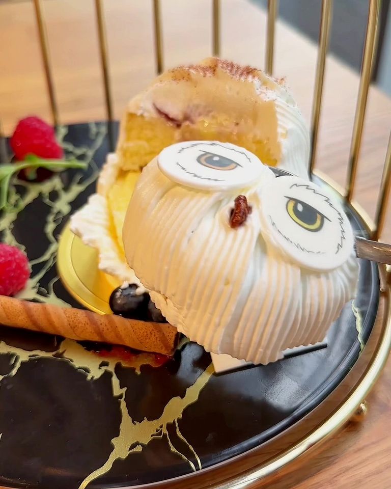 ヘドウィグ(フクロウ)のケーキはバナナ味でした。