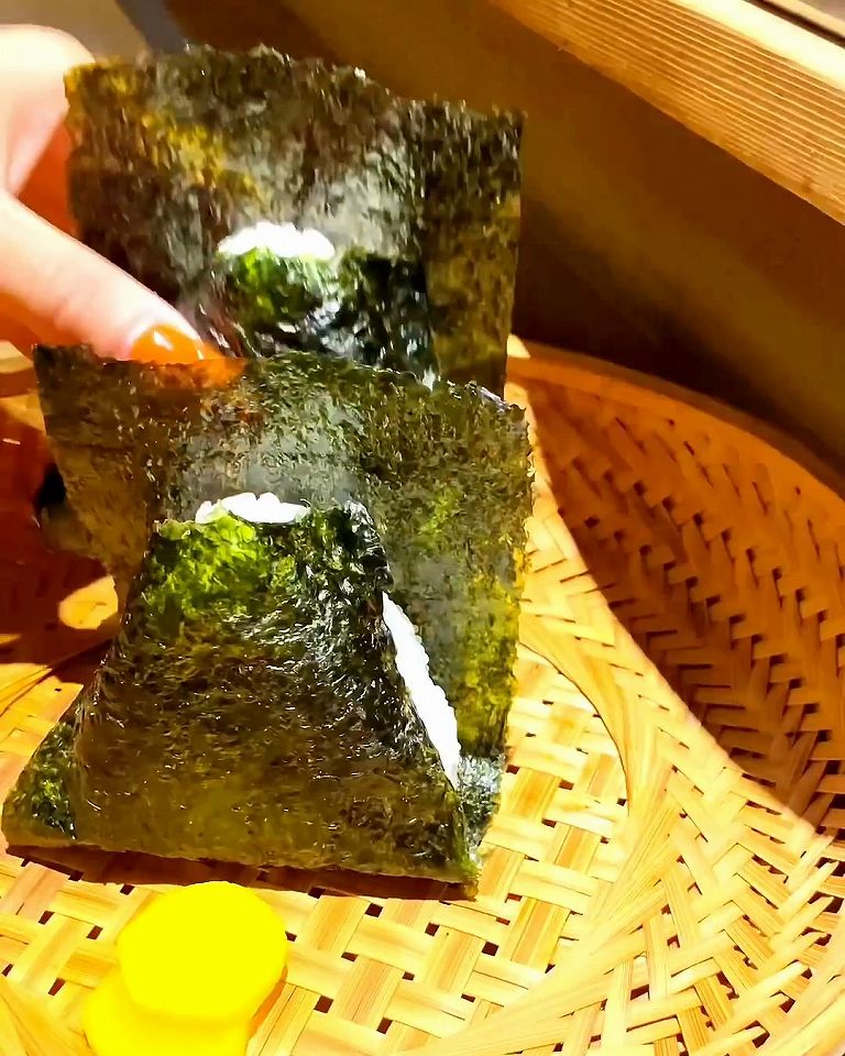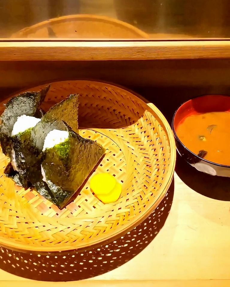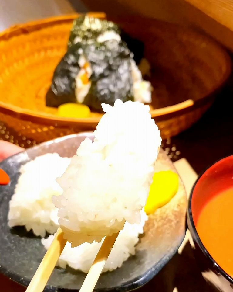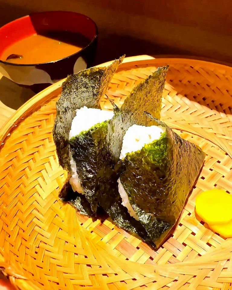 各地から食材を取り寄せ、厳選したお米を羽釜で炊いていて、江戸前の海苔はパリパリでしけないように提供してくれます!パリパリの海苔で食べるおにぎりはまた一味違います。