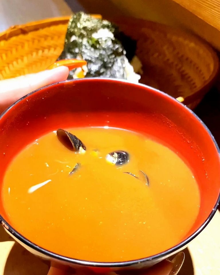 - 各地から食材を取り寄せ、厳選したお米を羽釜で炊いていて、江戸前の海苔はパリパリでしけないように提供してくれる