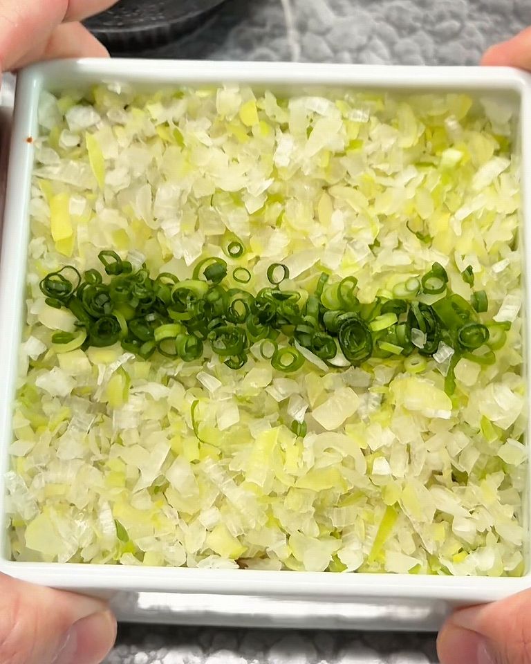 3段目はネギがびっしり詰まっています。中には何があるのでしょうか?