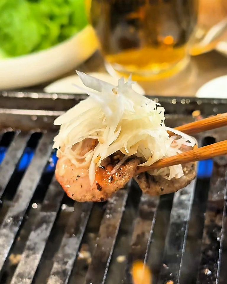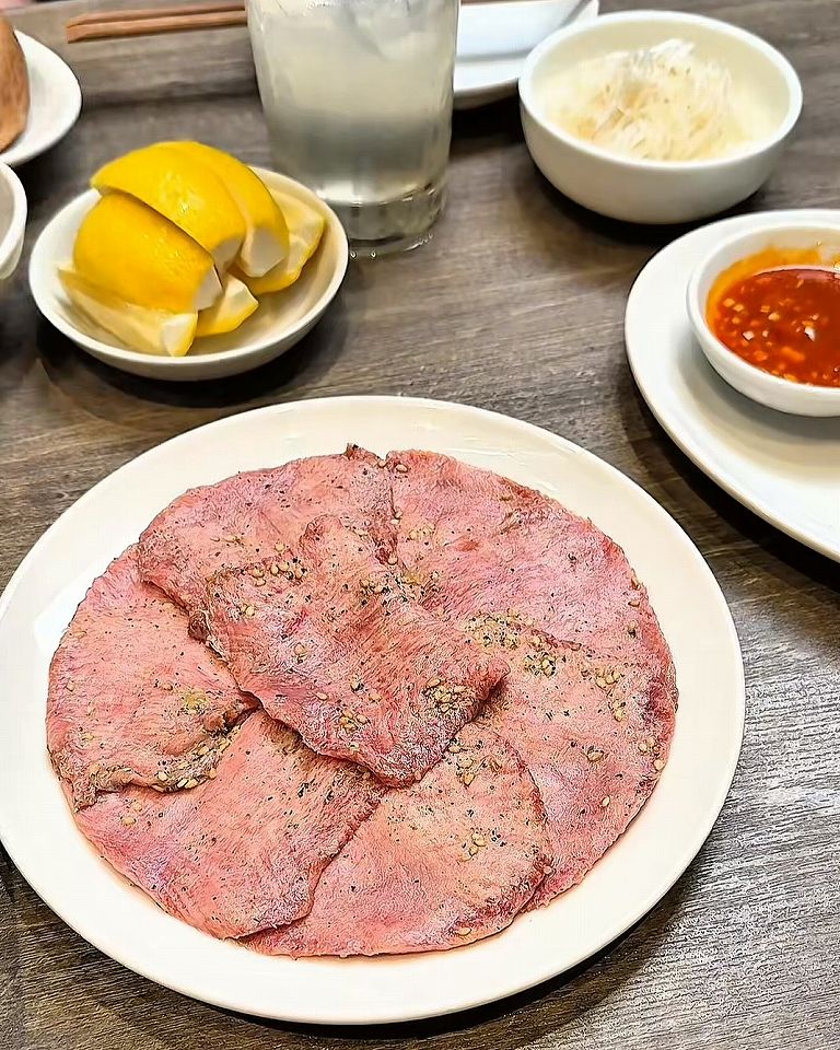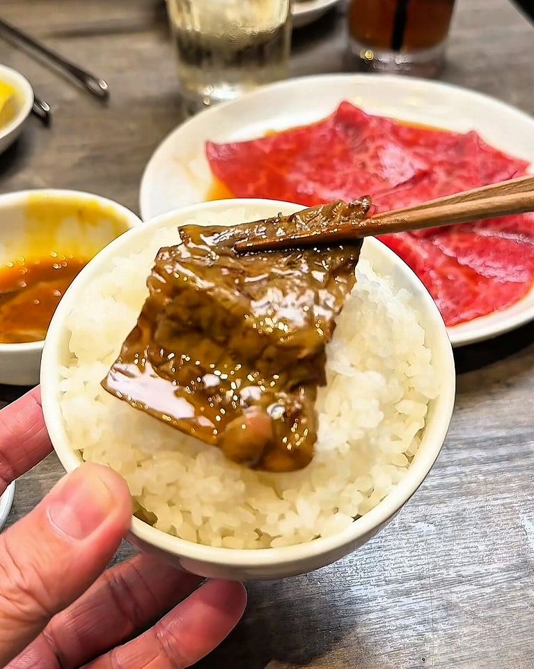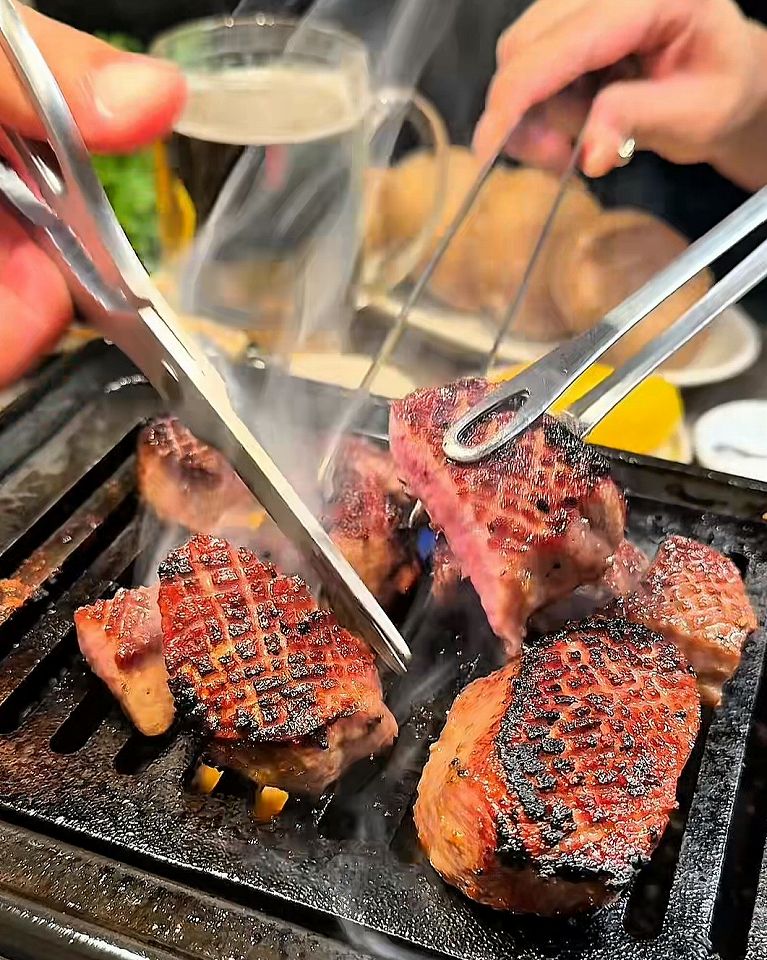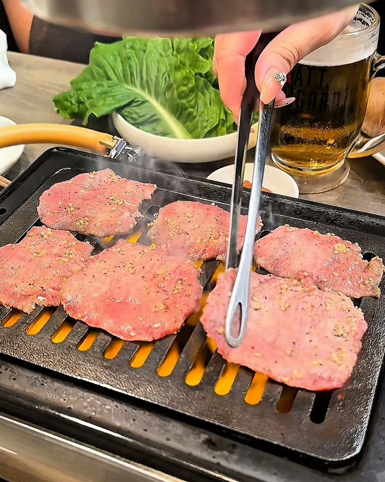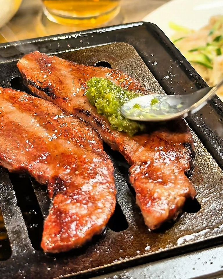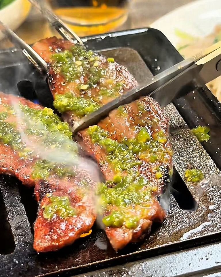 そして「TRATT. USHIGORO」、あの高級な「うしごろ」のカジュアル形態なんですが、見てくださいこの牛タン!肉質はそのままに値段がお手頃になってるからまた最強すぎます!新橋で焼肉食べるならここ一択ですね。噛むたびに旨みがあふれます。