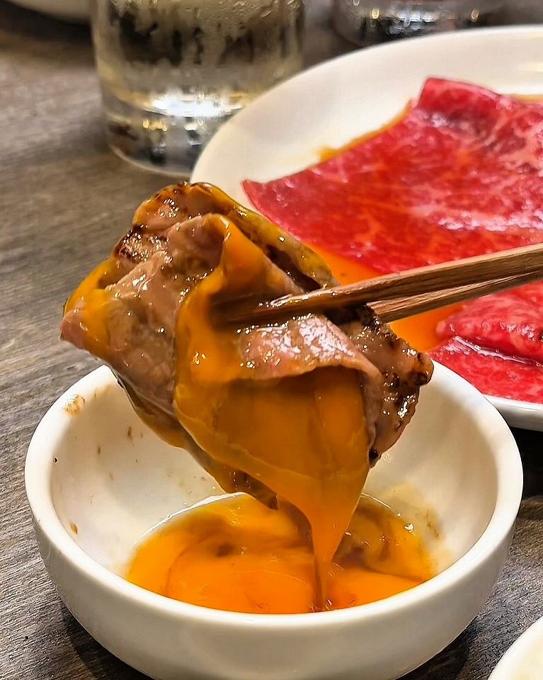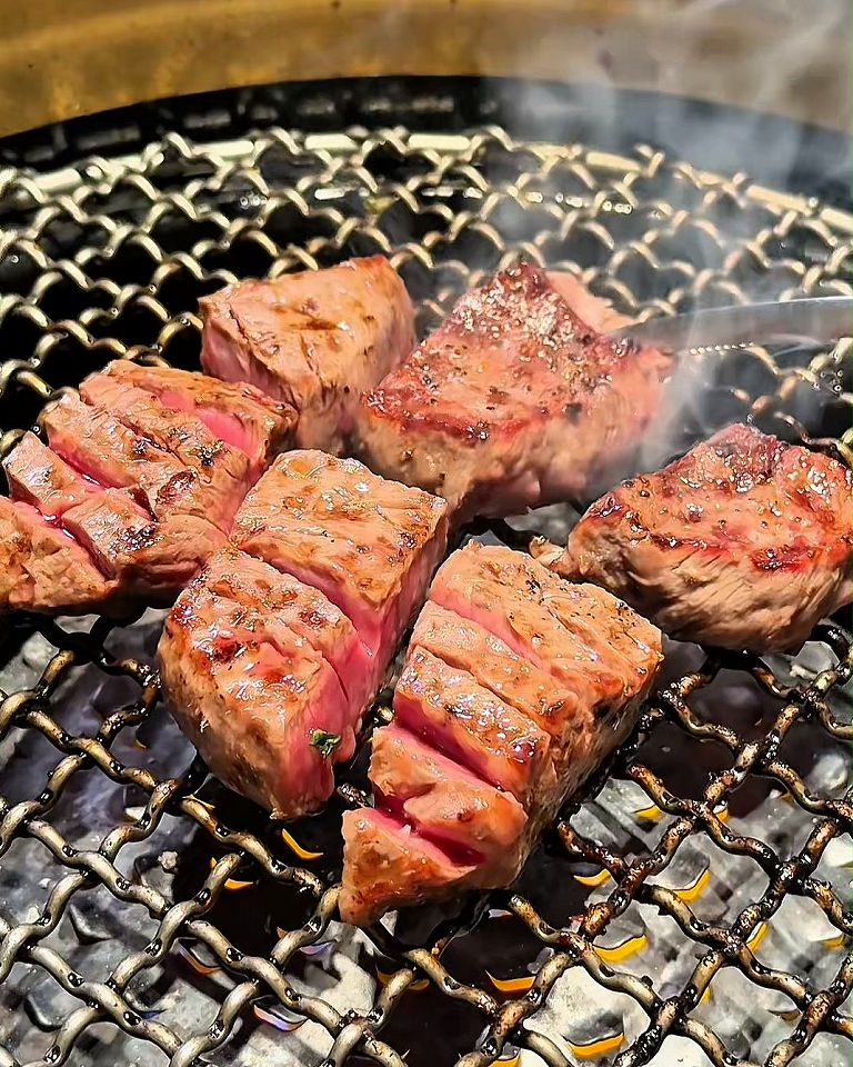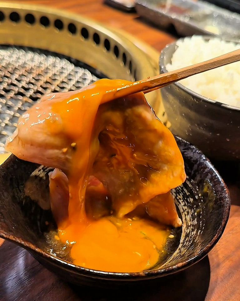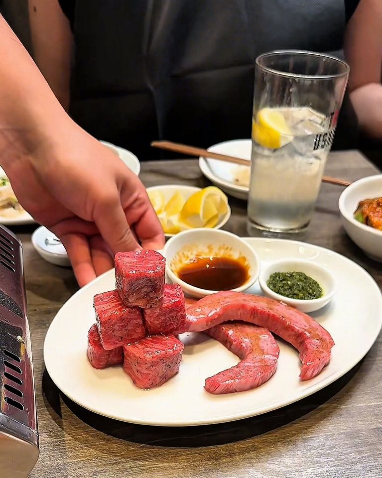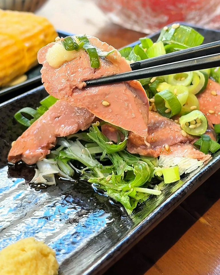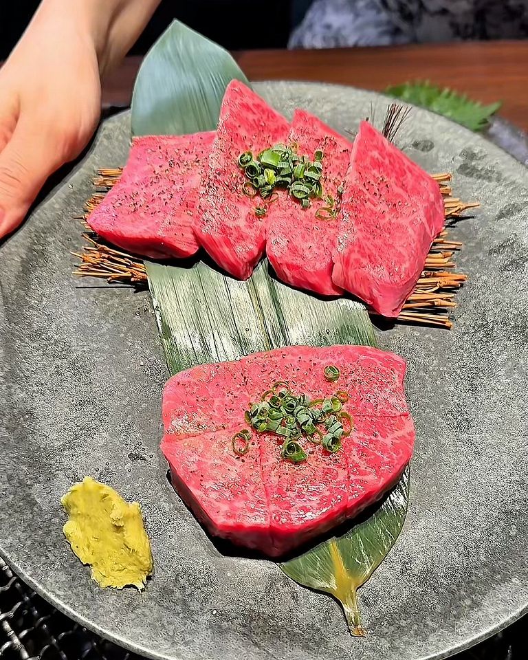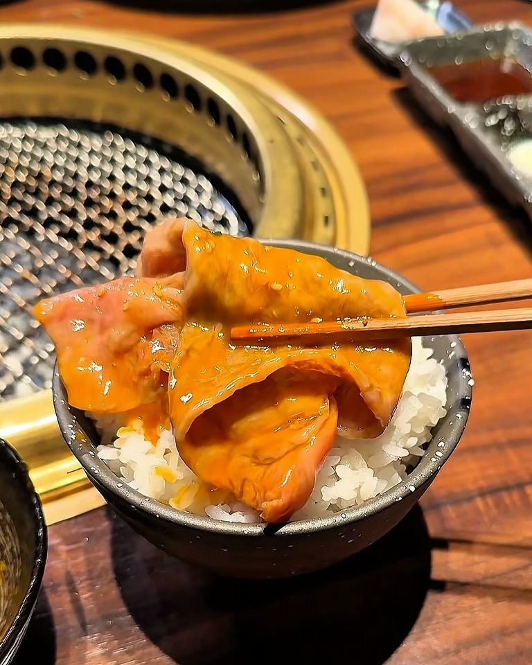 そして「TRATT. USHIGORO」、あの高級な「うしごろ」のカジュアル形態なんですが、見てくださいこの牛タン!肉質はそのままに値段がお手頃になってるからまた最強すぎます!新橋で焼肉食べるならここ一択ですね。噛むたびに旨みがあふれます。