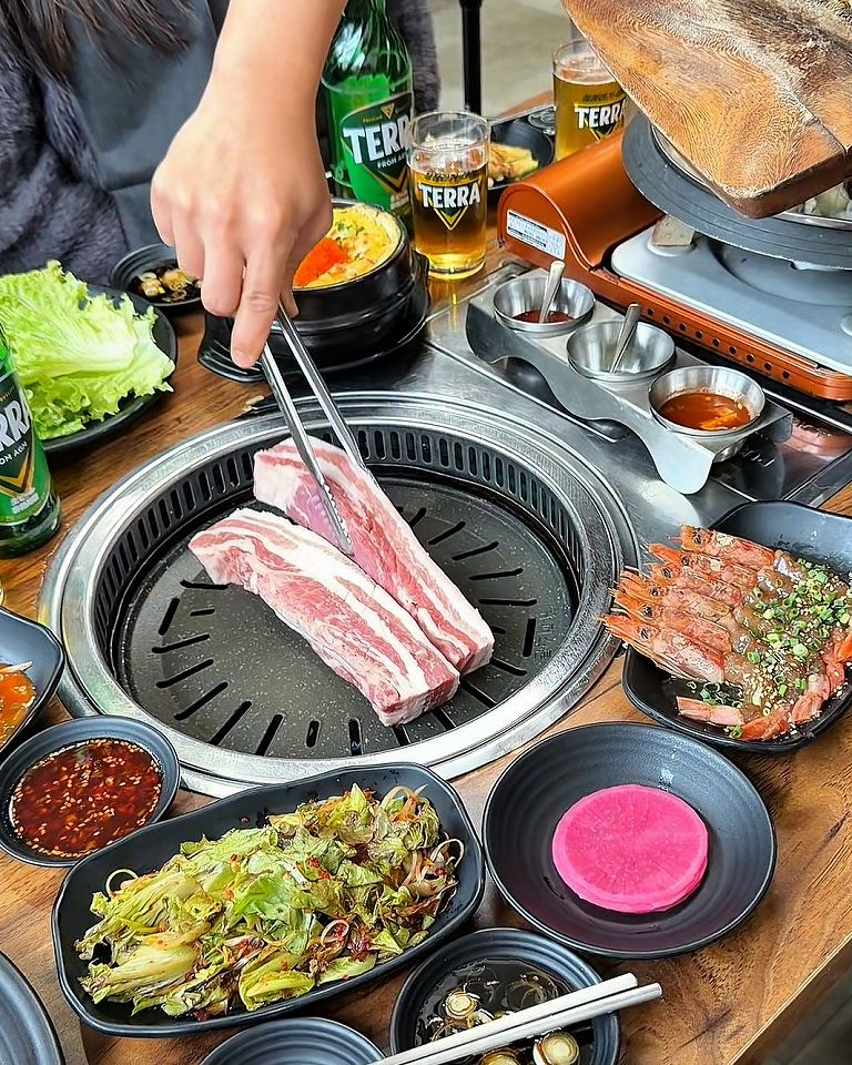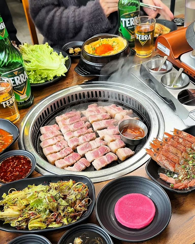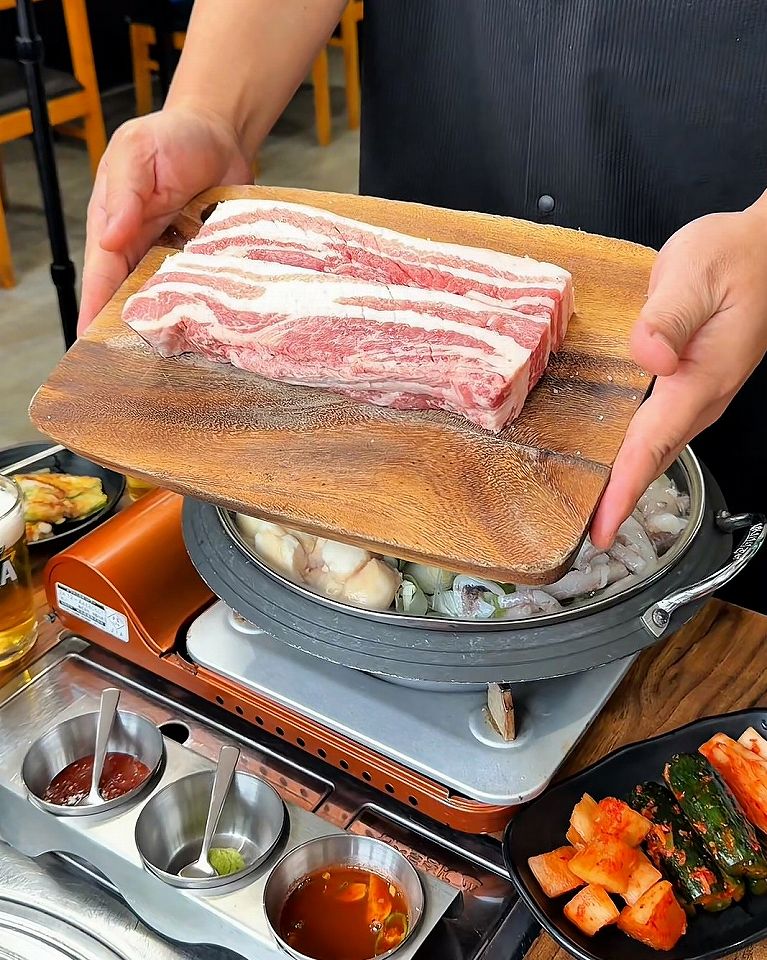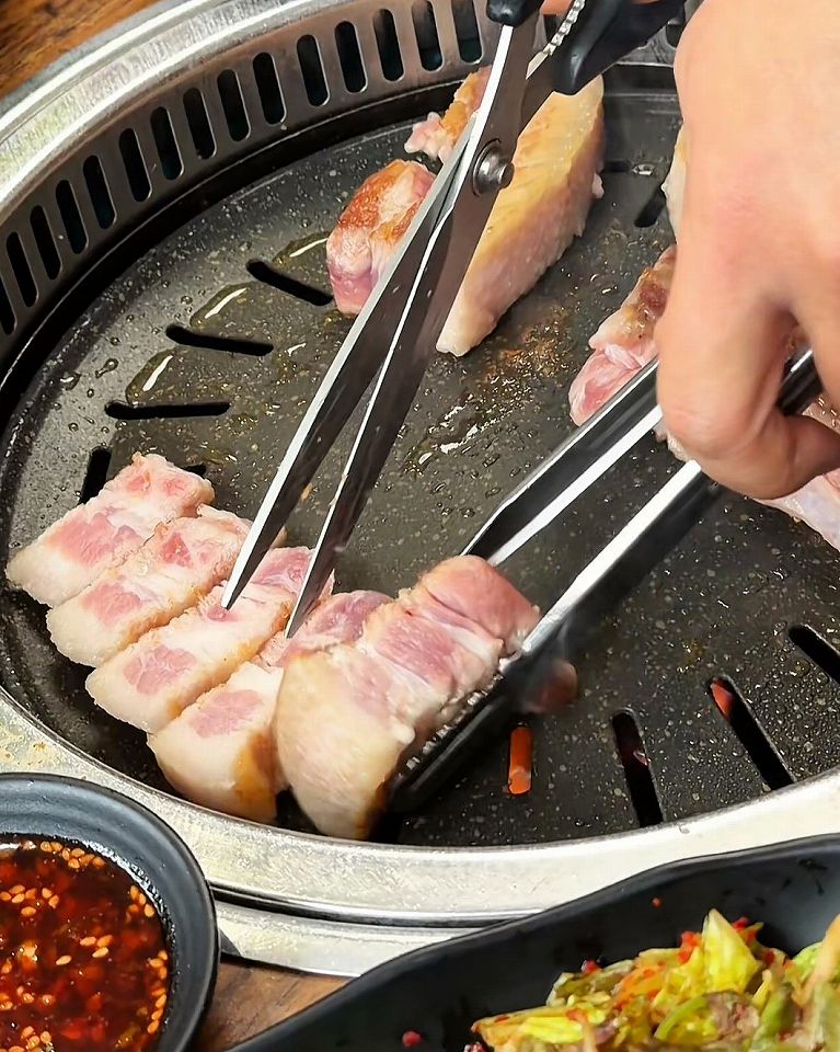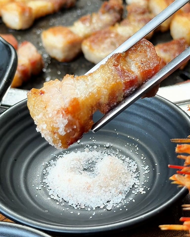 サムギョプサルは熟成させた岩中豚を分厚く焼くのが特徴