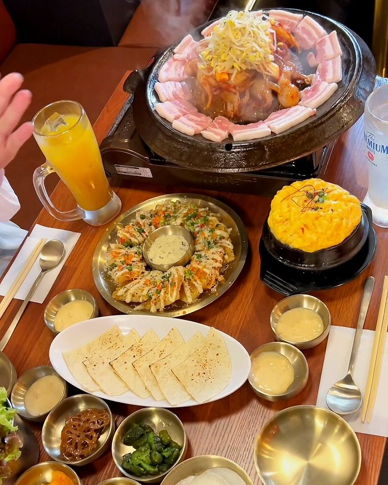- 人気はチュクミサムギョプサルで、ケランチムやじゃがいもチヂミのセットがオススメ