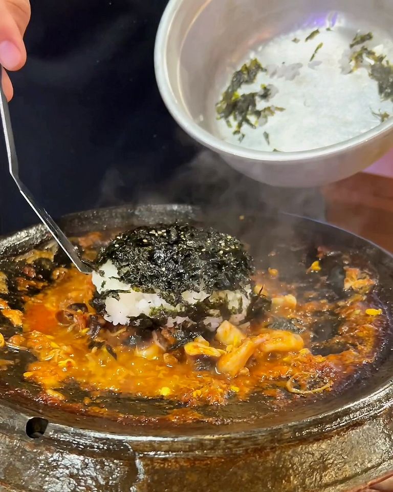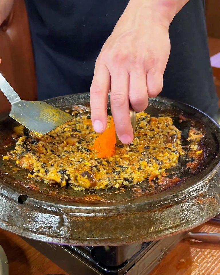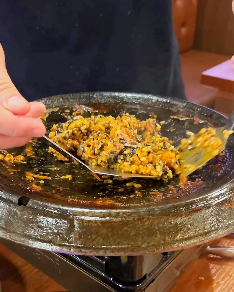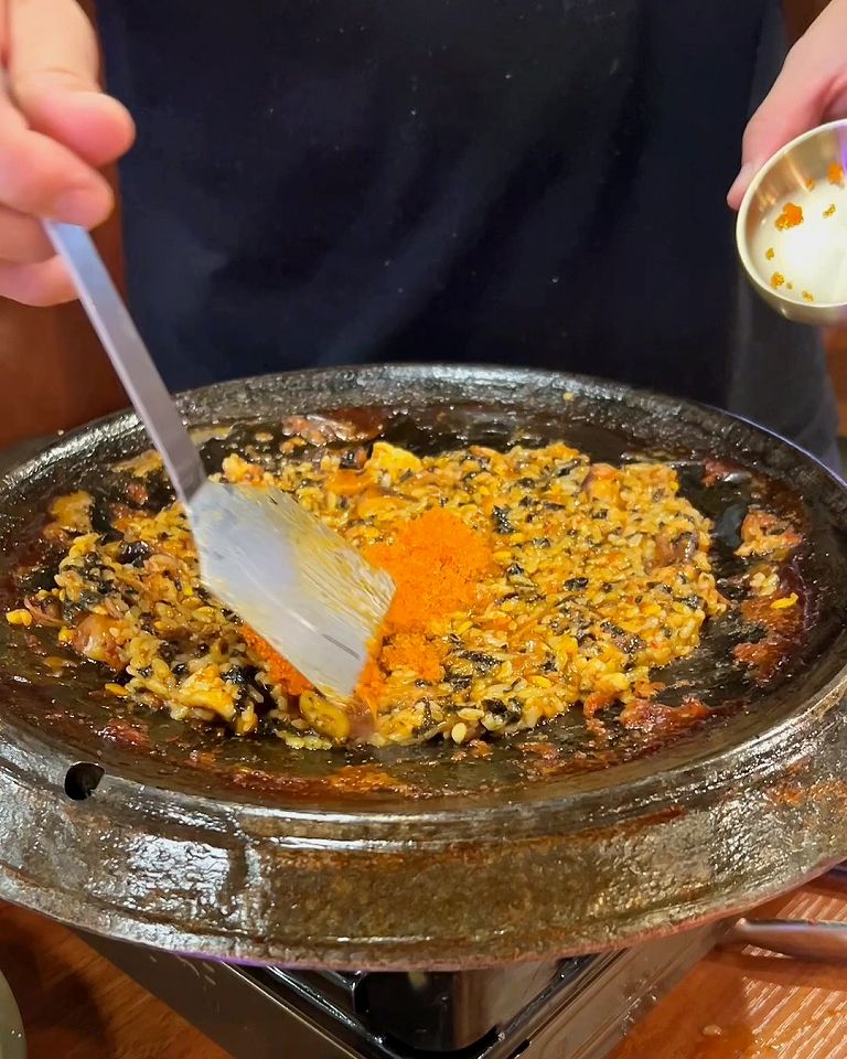 最後は残ったチュクミサムギョプサルにご飯を入れてくれて、美味しいチャーハンを作ってくれるんです!シメのご飯まで楽しめるのが、この料理の魅力の一つです。